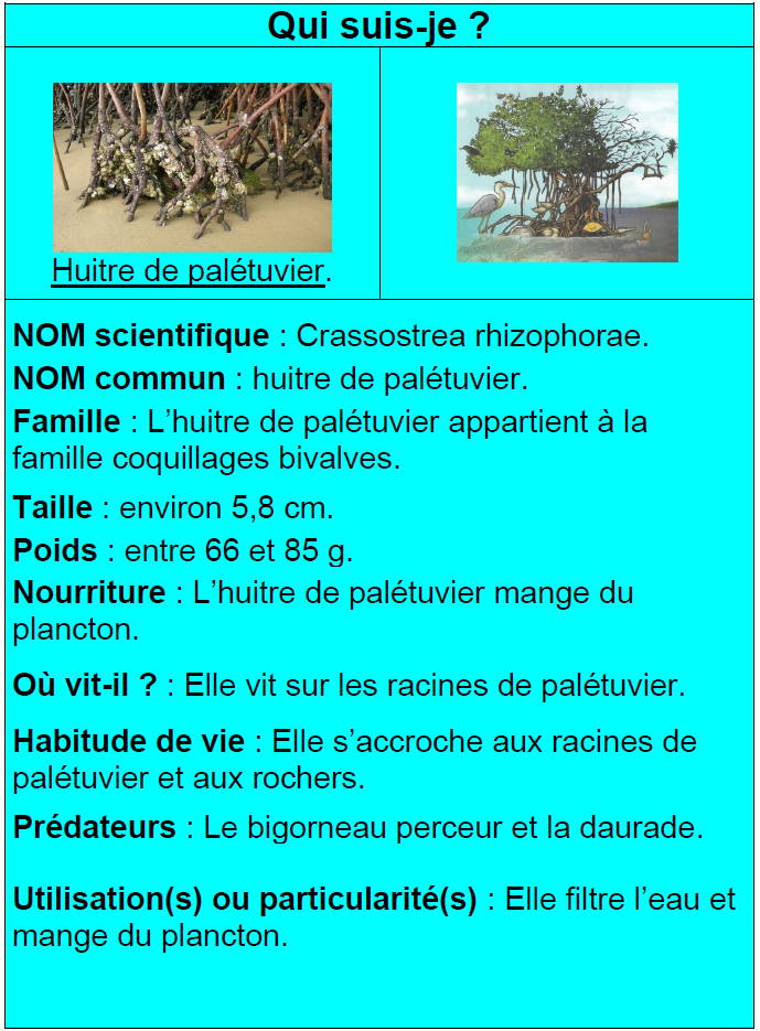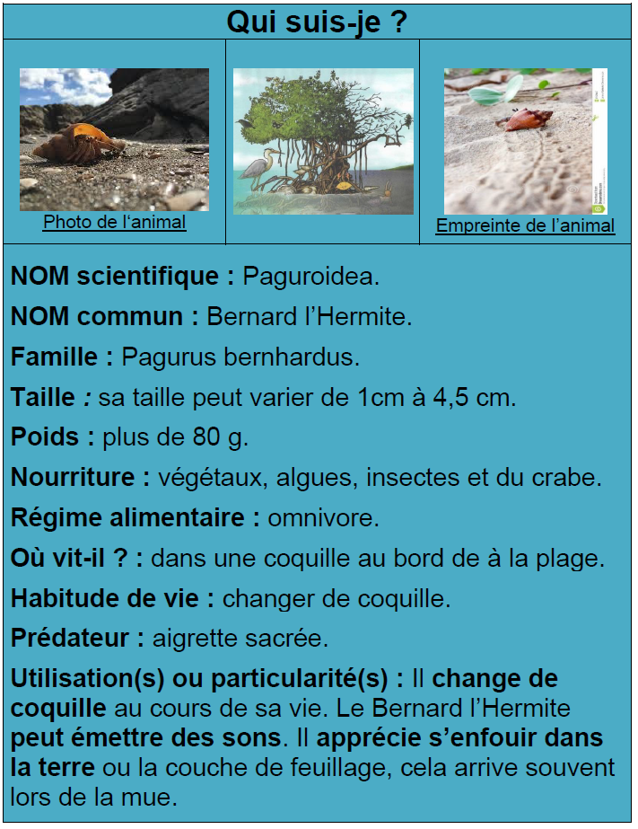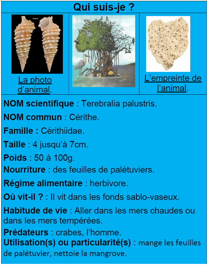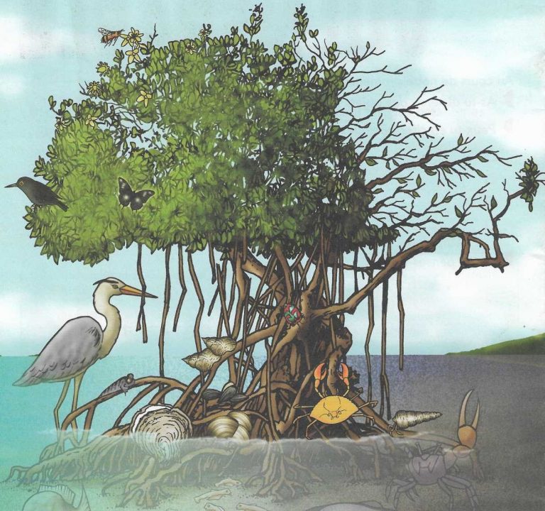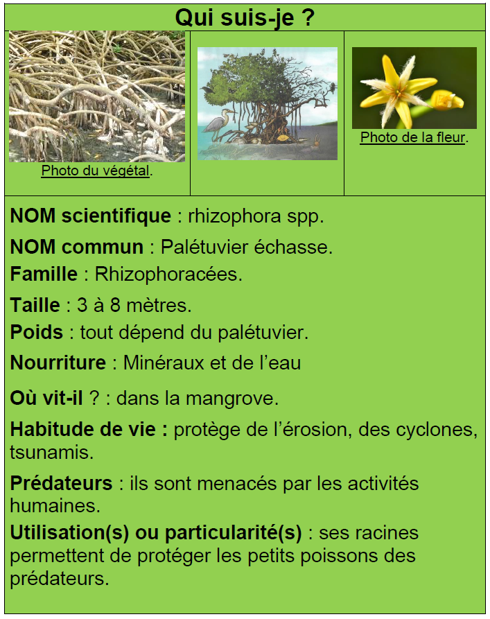 Ainsi, à l’aide des QRcodes présents tout au long du sentier dans la mangrove, vous trouverez des informations sur les êtres-vivants, de la faune et de la flore, recensés dans cet écosystème.